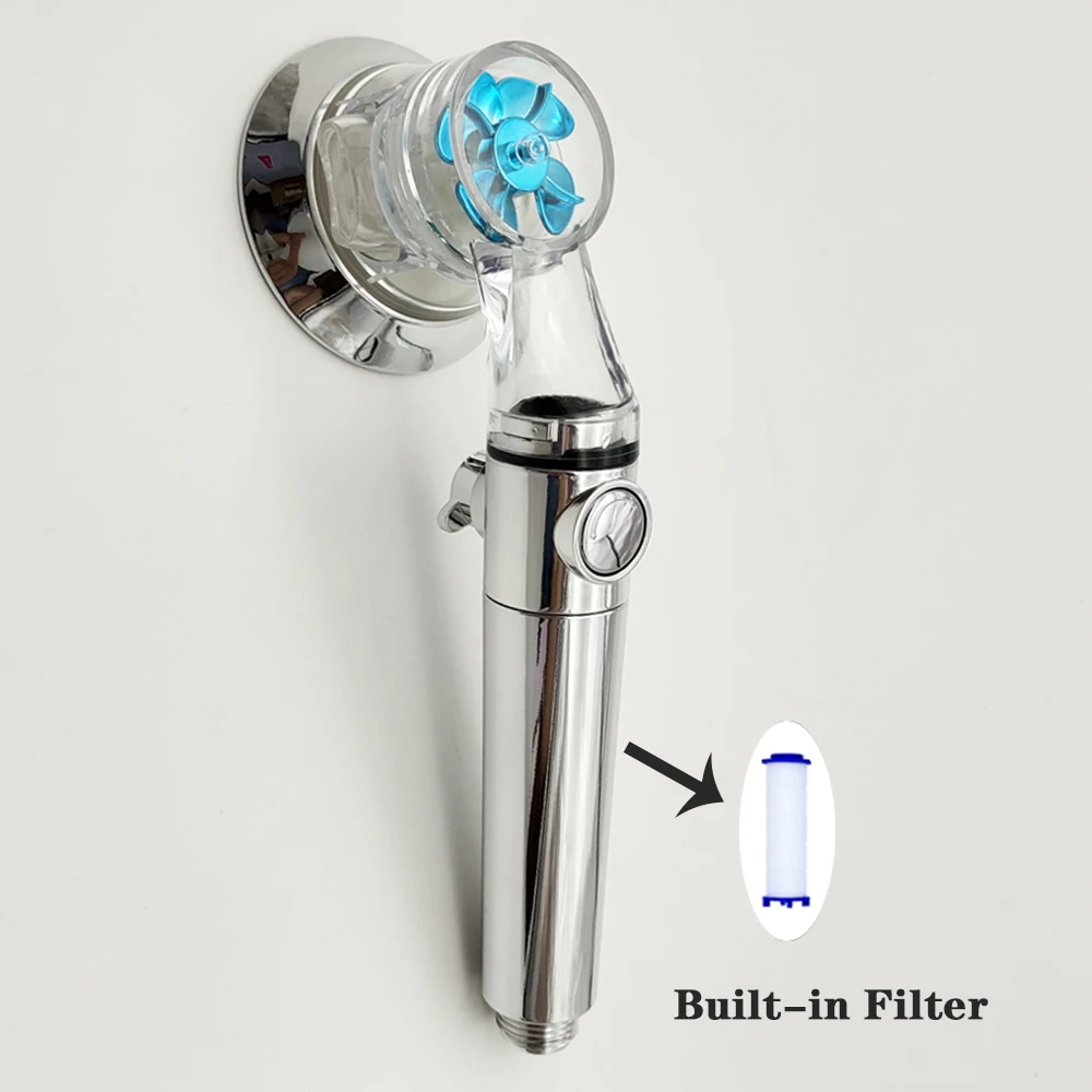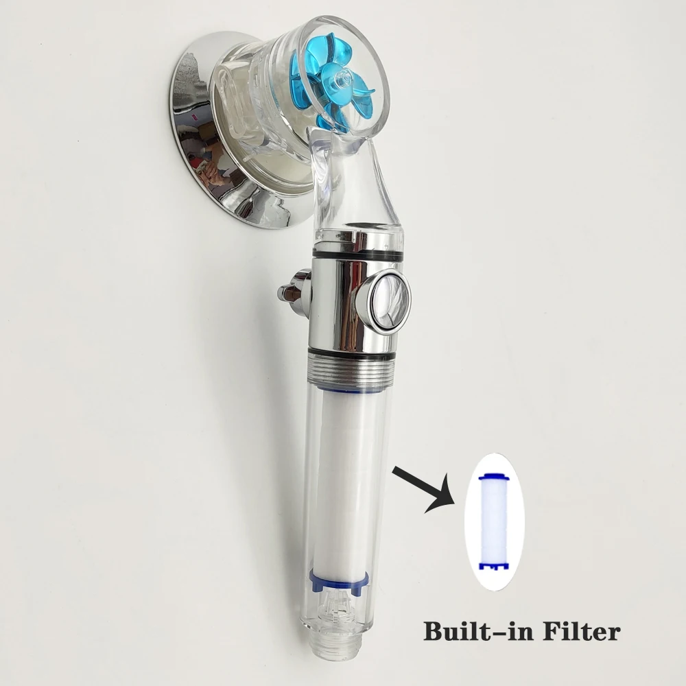 4. Propeller Driven Handheld Shower Head High Pressure With Filter And one-stop Switch